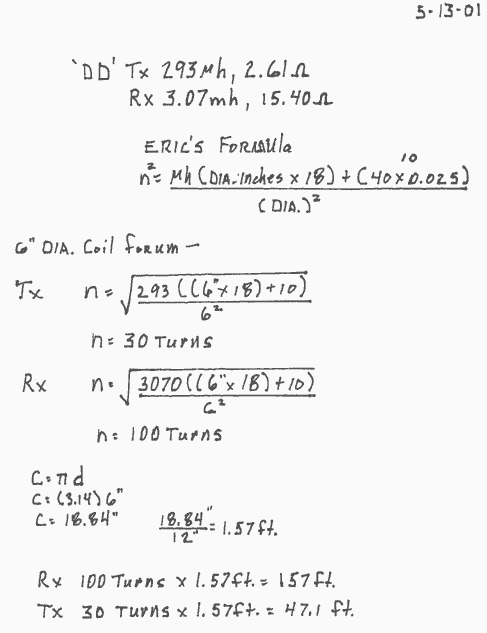 Это для ДД. Для кольца нужна еще компенсирующая обмотка. Сложить их в кучу и свести баланс, по минимуму напряжения на выходе приемной обмотки. При чем обмотки могут быть любого размера, то есть для любой нужной Вам катушки. Одинаковость частоты для разных датчиков, есть у многих приборов, например у Тесоро. У Експлоера, если брать большие датчики. Это самое главное. Второе : нужно учитывать сопротивление обмоток. Главным образом Тх(передающей). Для безопасности прибора, если вдобавок не знаете его схемы, его возможностей, сопротивление этой обмотки, должно быть не меньше заводской. Для Rx обычно применяется тонкий провод(кроме Експлоера) здесь не так критичен диаметр. В большинстве случаев диаметр подойдет 0,2 мм. Сделав одну катушку уже будете прикидывать примерно по частоте и сопротивлению, сколько витков, и на какой диаметр. В первом случае естественно нужно делать замеры по мере наматывания витков. |