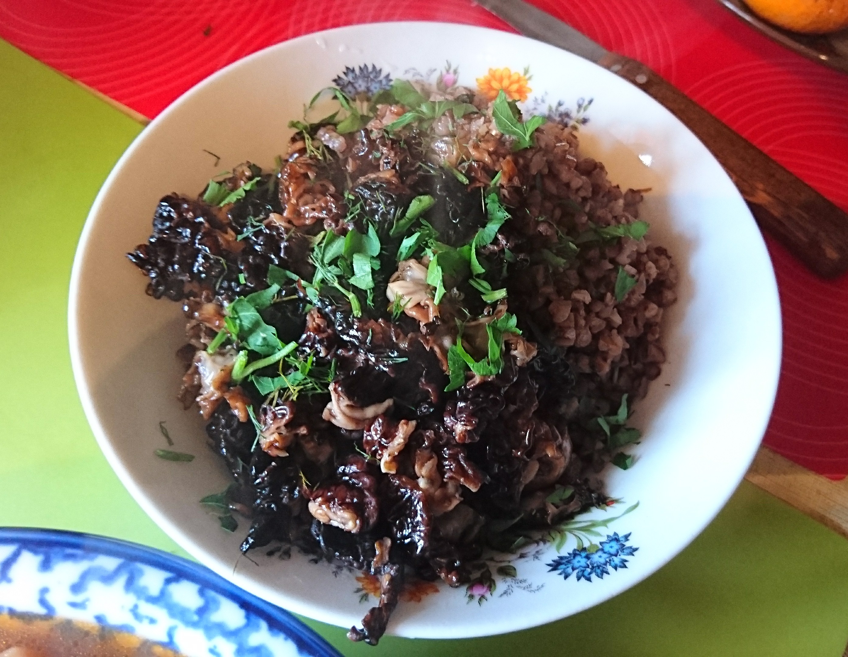 Не обязательно былые - подберезовики тоже отлично подходят, прекрасно расползаются в силу своей консистенции и обволакивают гречку. Весьма приятственное блюдо выходит