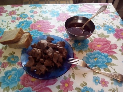 Оленина в клюквенном соусе. Мясо порезать ,замочить в соке лимона,соль,перец по вкусу.На час поставить в холодное место. Клюкву залить красным вином и довести до кипения ,добавить мёд ,сок калины по вкусу. Соблюдать осторожность.Свежая клюква имеет склонность взрываться,так что лучше использовать замоченную в прок.Соус процедить пока горячий.Готов к употреблению когда загустеет. Мясо обжарить на небольшом огне.Приятного всем аппетита. Лесной дед ушёл в ночь.После него остался горьковатый запах самосада .За окном падал снег а у меня на столе ждало вкуснейшее угощение.Спасибо тебе Лесной Дед! По такому поводу сложилось стихотворение. За окном моим метель.Тишина. Сосны чёрными тенями стоят. Скучно стало на душе у меня И ко мне пришёл охотничий азарт. Я услышал в далеке звук трубы И коней на большаке мерный храп Егеря уже развесили флажки И пустили легавых в оклад. Я сижу на холостяцкой кухне моей. Нож точу и заряжаю жакан Ствол почищу я Тулке своей И курками поиграю в мечтах. А там где то вдали выстрел стих Отразился и рассёк тишину. И в оскале волчьем затих Хрип последний.Не завыть на Луну! В даль куда то смотрю сквозь прицел Слышу я своего сердца стук. На меня надвигается тень Плавно я нажимаю на спуск. Старина не подвёл вновь меня. Пуля точно нашла свою цель. Дичь осталась лежать на земле В мох рогами уткнулся олень. За окном моим метель.Тишина. Сосны чёрными тенями стоят. Мясо жарю я на кухне моей В час когда наверно все спят. Вложенные эскизы изображений |