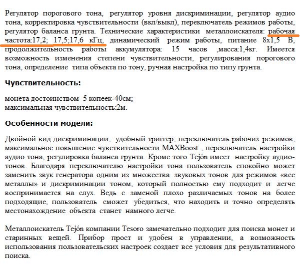 QUOTE(wouwou @ Dec 31 2017, 22:07) Его пример как раз и поможет понять, насколько на самом деле можно менять частоту на катушке, рассчитанной производителем на единственно выбранную (и полноценно возможную) частоту, когда расчёты велись с учётом материала и качества провода, количества витков этого провода и его диаметра На фотографии подчёркнута возможная рабочая частота, которую можно позволить, технически полноценно используя одну и ту же катушку (все прочие способы от лукавого) Да что ж такое. Лишь бы что запостить. Это 3 частоты Тежона для отстройки от помех (и других МД). Я сравнивал Тежон и Вакуэро. Катушки одинаковые полностью. Частоты разные. |