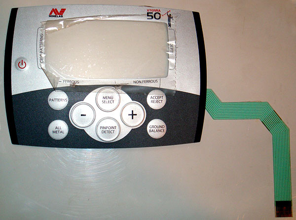 могла пластина кнопки лопнуть, деформироваться или окислиться... наклейку надо снимать глядеть...