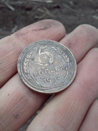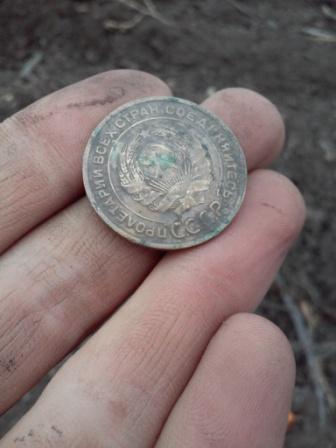 Пока наверное вот это. Найдено на перевыбитом нами месте осенью 2013г. Через какое-то время в паре десятков метров были подняты две монеты по рублю приблизительно тех же годов.