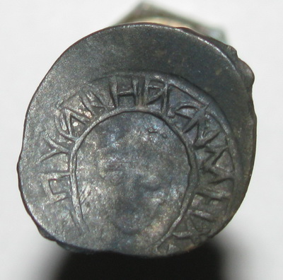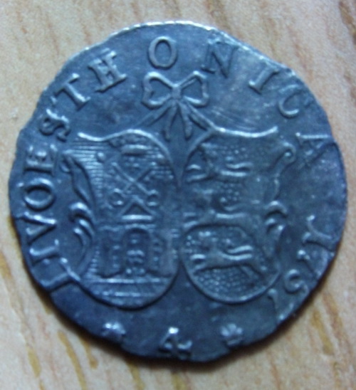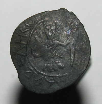 Пару лет назад, на битом поле под Усть Пристанью, что рядом с Рогачево, вот такая монетка выскочила, жаль плугом целованная была, но всё же