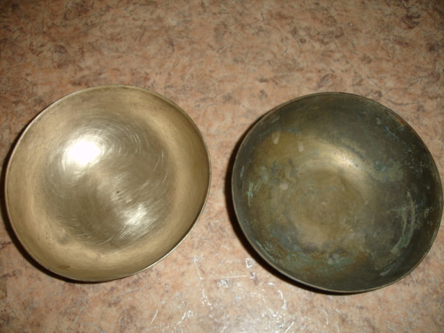 Нормальные чашечки я бы тоже патину содрал, я что могу посоветовать Нейтрализатор можно взять, на край в Фери или Санокс, но наждачкой все равно придется натирать так как даже под патиной на предмете имеются мелкие раковинки которые после применения химии все проявляются, можно еще насадками на дрель воспользоваться щеточными они заменят вам крупную наждачку,
