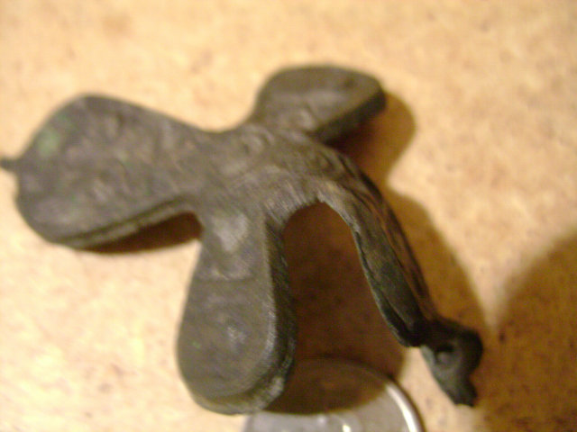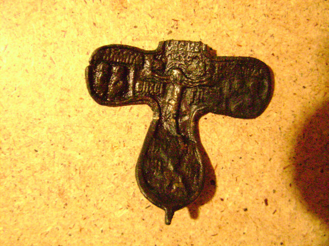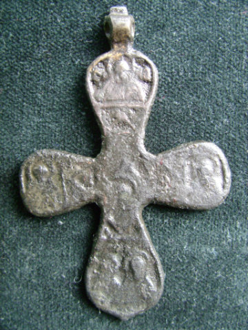 Первоначальных фоток, первого крестика к сожалению нет, думал ничего не получится, т.к откопал две части и одна из них развалилась в руках, не металл, а сплошные окислы, а оглавие взял от другого креста. Так, что собирал из 4 частей. Был отрицательный опыт и фоткать не стал. Другой крестик фото есть до и после. Получилось как-то так. Крестики восстанавливал до знакомства с этой темой. Вложенные эскизы изображений |