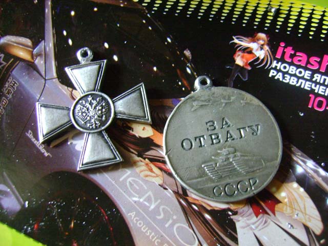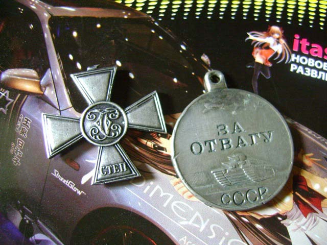 Купил как-то копию иноверческого Георгия с отломанным ухом и товарищ принёс дедову Отвагу с чудовищно перепаянным ушком. Не мудрствуя лукаво запаял оловом отверстие в ухе медали, а вот кресту пришлось припаивать ухо целиком. Зачистив и обработав паяльной кислотой место припоя окунул крест в каплю расплавленного олова. Подождав, когда всё затвердеет и остынет обработал надфилем и дремелем аккуратно просверлил отверстие. У медали проделал похожую процедуру - пересверлил отверстие и закруглил надфилем ухо. Не фонтан, конечно, но приятеля результат вполне устроил, и я крестом тоже остался доволен. Сообщение отредактировано Пушкарь: Sep 21 2011, 16:55 Вложенные эскизы изображений |