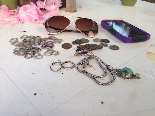 По существу-сегодня прямо с порога при выходе на пляж девочка попросила найти ключик от машины, на вопрос где потеряла указала полосу размером с гектар,правда на суше. Я честно прошелся, помятуя прошлый раз, она записала мой телефон. В итоге вышло все наоборот- контакты есть, а ключей нет. Потом я нашел 52 цента, 3 квотера, и несколько гривенников! В сумме $1.86