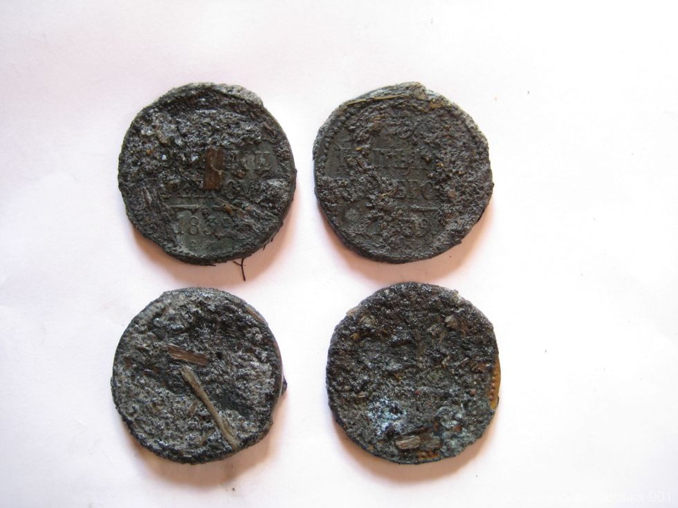 QUOTE(Вольфович @ Sep 18 2014, 10:08) Ну вот продолжим. Как писал уже в теме Абырвалга о катушке 3Кгц,что кроме опыта и трудолюбия нужно еще и везение. Дело было весной 2014г, в начале второй половины мая. Начались дожди,холодно и сильный ветер.Приехал с копа,промерз. На следующий день также моросит дождь.Решил ни куда ни ехать. Но на душе,что-то не то,вот манит куда то и все тут.Время подходит к двенадцати часам. За это время выкурил наверное пол.пачки сигарет. Дождик перестал идти,небо немного прояснилось. Ну думаю все таки сгоняю,рядом есть местечко ,где можно походить. Приезжаю,достаю прибор и пошел.Поднимаю серебрушку Николая2,иду дальше.Прохожу всего метров 70-80,слышу сигнал цветнины и чуть со срывом в железо. Грунт чернозем,спрессованный навоз глубиной не менее 30см. Копнул,на глубине 15см стопка монет. Достал монеты,закурил и на душе сразу так спокойно стало. Достаю увеличительное стекло,давай смотреть,чем поделился дедушка земляной. Несколько копеек серебром и четыре больших монеты. Но они были сильно закоксованы,так что разглядеть сумел только одну. Это были 3Копейки серебром 1839г с.м. Ну думаю подвезло сегодня,можно и домой ехать. И это все произошло в течении часа.Во втором часу я уже был дома. Приехав домой помыл еще одну большую монету. Опять 3Копейки 1839г с.м. Третья начала отмываться только через пару дней. Показались цифры. Третья монета тоже 3Копейки 1839г с.м. Четвертая была 3Копейки 1840г с.м. Короче из четырех трешников-три 1839г. Ну как это назвать-везение или что больше. После этого я уже ни чему не удивлюсь. Главное закапывайте за собой ямки,не ройте на святых местах и Вам удача улыбнется. Курить вредно! -------------------- squal-rus@yandex.ru