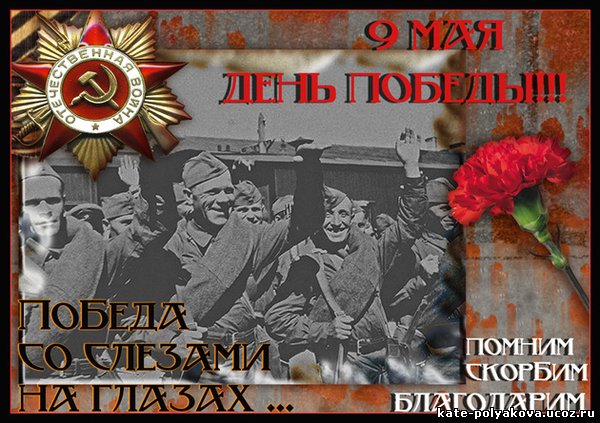 С ДНЕМ ПОБЕДЫ С ДНЕМ ПОБЕЕЕДЫ. -------------------- ЕСЛИ ТЫ РЫЖИК В ЗЕМЛЕ ОТЫСКАЛ,ТЫ НЕ ГРИБНИК,ТЫ КОПАТЕЛЕМ СТАЛ....