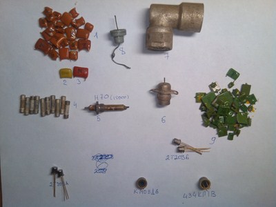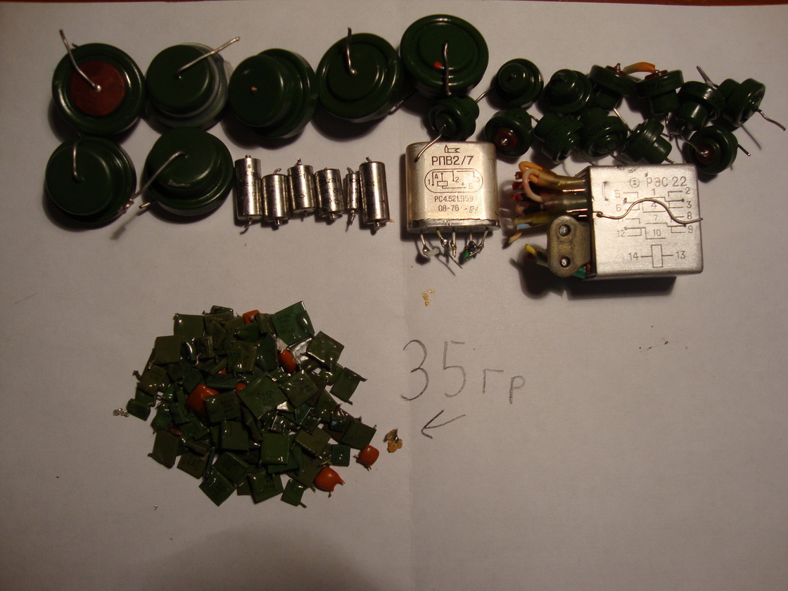 в реле есть маленько серебра . контакты снимайте. в герконе( самое нижнее фото) немножко позолоты. большие конденсаторы в жесть