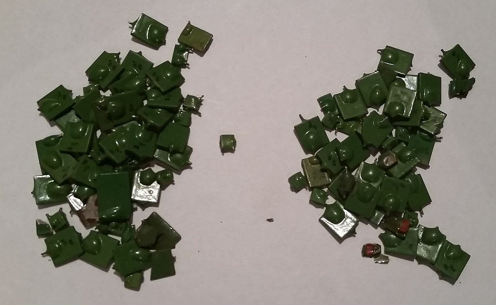 QUOTE(Aleks+ @ Feb 9 2016, 07:35) надо разбирать и смотреть что внутри Разобрал. В КМ-140, реохорд (4 секции) и 9 зеленых км. Проволока была намотана на толстую медную и покрыта лаком, обжег над газовой плитой - снялась легко. ![]() Кстати, залез в коробку со старыми запасами деталей, перебрал, нашел вроде интересные, просьба подсказать, какие из них покупают и по какой цене, а какие пустышки. ![]() ![]() ![]() Из современного - процессоры ![]() Сообщение отредактировано -=RUS=-: Mar 1 2016, 13:57 -------------------- 獅子 ハード