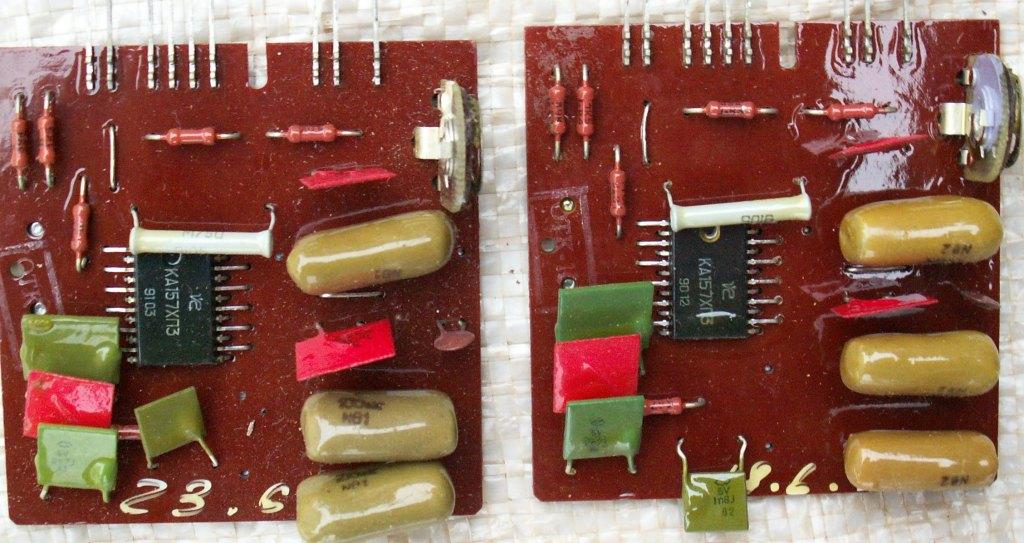 а в разных годах по разному.фото платы сделайте. ВМ 12 уже редкость. в тёмного цвета часто бедные. бывает около 15 гр зелёных КМ. 27 гр рыжих. или болгарские . танталовые К53-16 транзисторы КТ814. в двигателе конденсатор стоит или км или болгария. ....