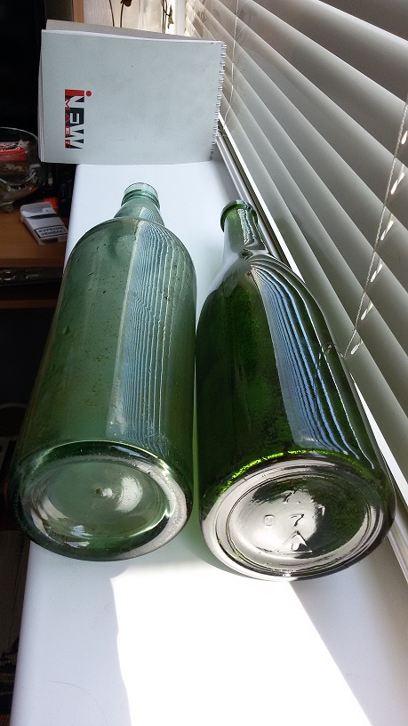 Подскажите пожалуйста по двум бутылкам: высота левой 31 см, диаметр по низу 7,5 см., правой 34 см. диаметр по низу 7.5 см. и бутылке коньяка Шустовъ высота 37.5 см, диаметр по низу 9 см. по стоимости, из под чего, будет ли интерес к покупке у кого? Будут продаваться. Заранее благодарю. С ув. Вложенные эскизы изображений |