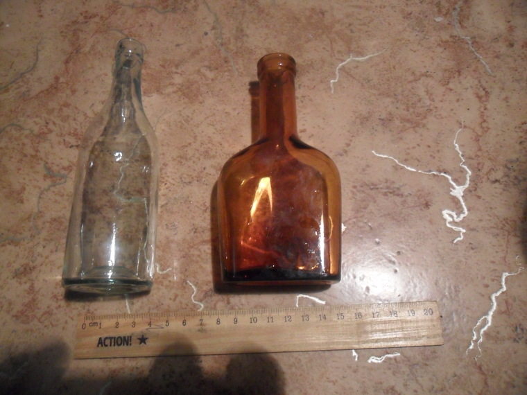 Приветствую ценителей стёкла.Подскажите по флакону; из под чего и каких времён?Толстостенный,маркировки нет,по краю горлышка была латунная кайма(сгнила оторвал)...и если можно степень редкости и цену(таких вроде не встречал)Благодарю.