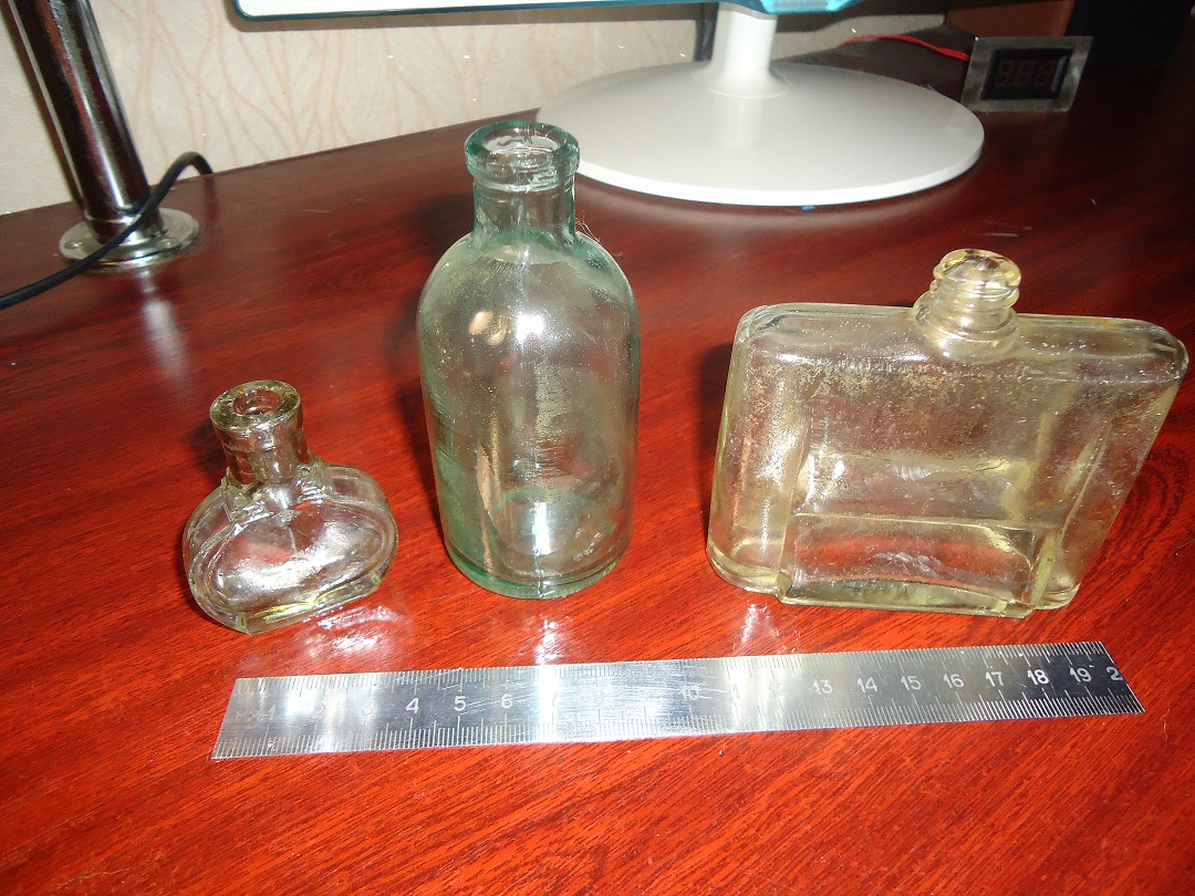 Парфюмерные флаконы. Большой произведен на заводе С. Глинского. Маленький - не разобрал.