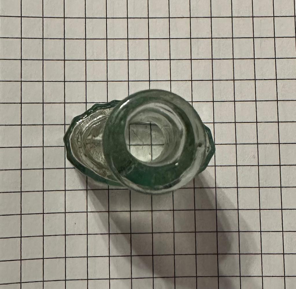 Были такие бутылки с ручкой-кольцом, вариант прозрачного стекла и тёмно-злёного, как винные бутылки, встречаются в слоях начала
