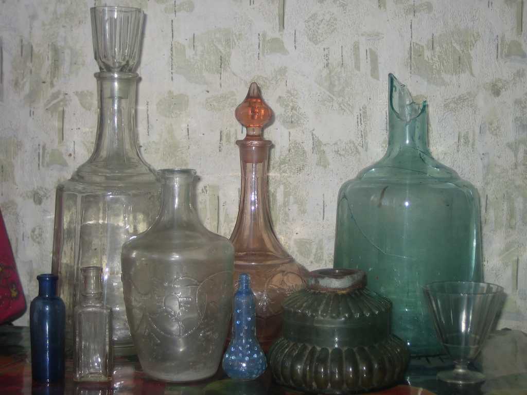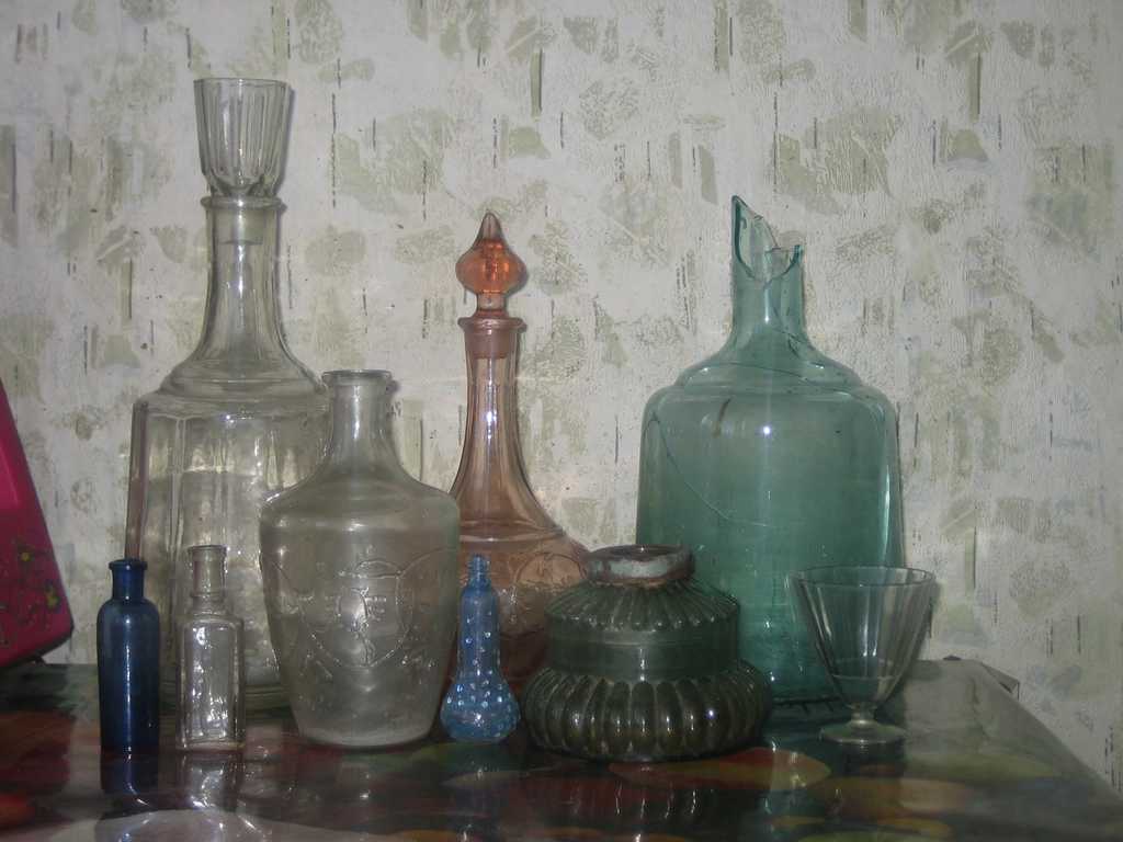 Сегодня пацаны проезжали мимо и завезли пару экземпляров! Бутыль-четверть и графин (жаль что горлышко отколото, но зато пробка целая)....