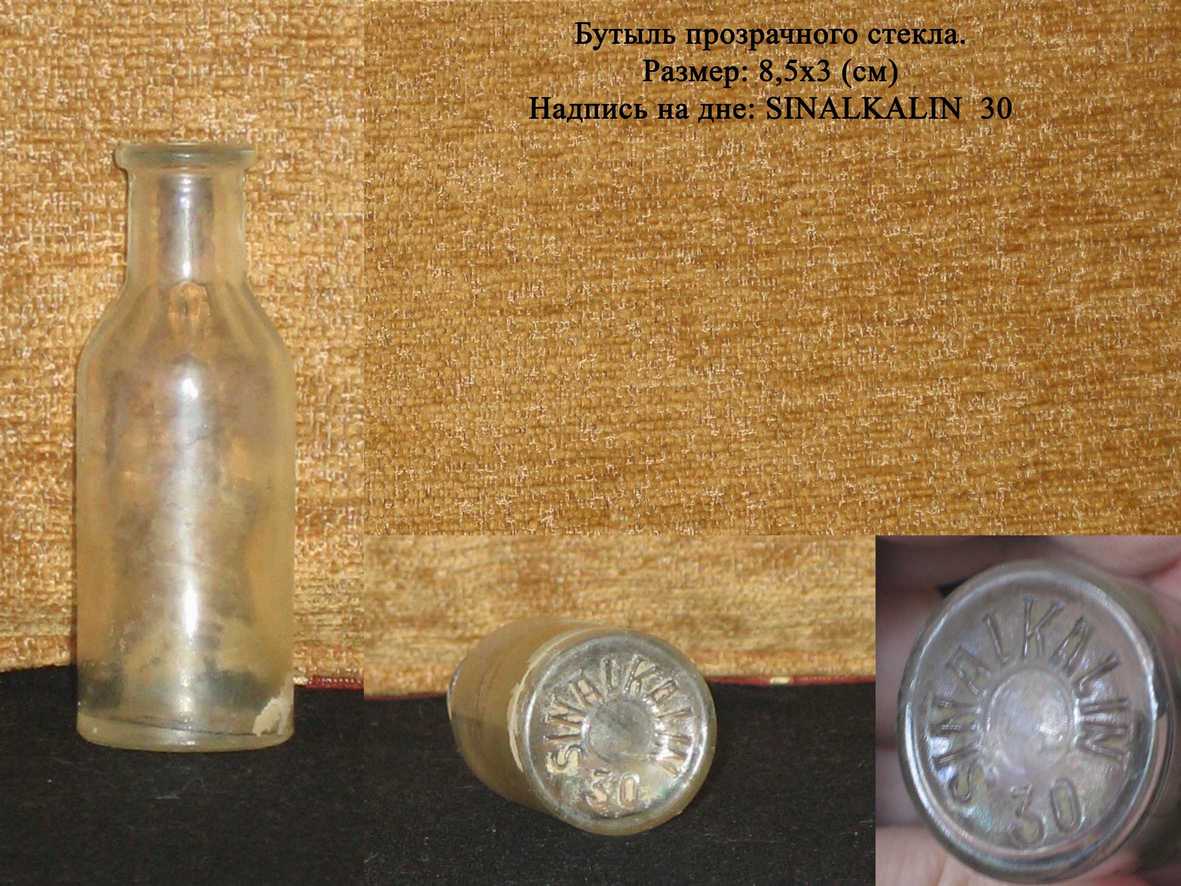 QUOTE(Kersh @ Aug 23 2010, 21:56) Что за пузырьки? Что в них могло быть? Подскажите! Первый - из-под чернил. Второй - стандартный аптечный: для самодельных микстур, растворов и т.п. Ценности, увы, никакой... -------------------- Ту ти ту рум ту ту - (англ.) Два чая в номер двадцать два.