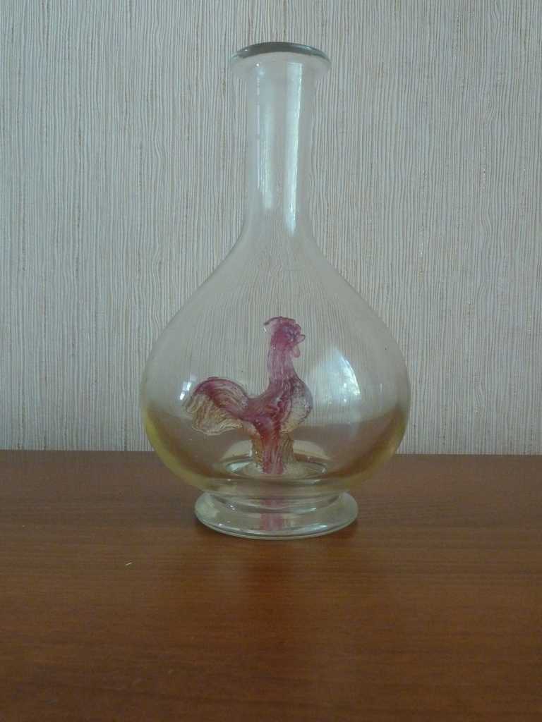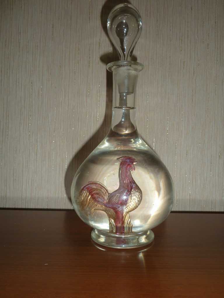 К графину подобрал пробку, и залил спирт! Эффект интересный, петух увеличился почти вдвое))) Вложенные эскизы изображений -------------------- Приму в дар все что связано со старой парфюмерией и косметикой...