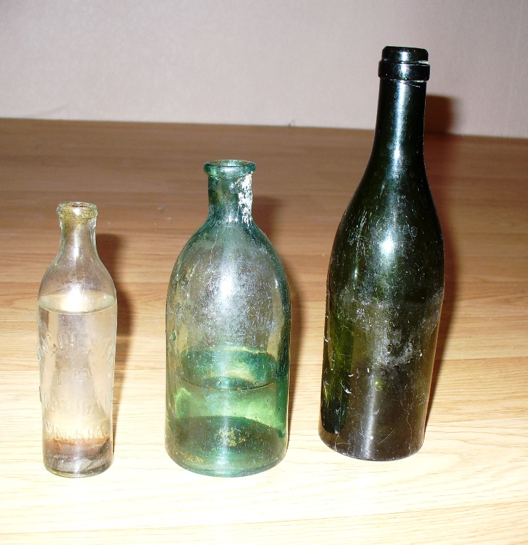 Сам, недели 2 назад поднял, разрабатывая фундамент довоенного дома. Сопутка была монеты конец 19в и довоенка 30-х гг 1-я высотой 270 мм из прозрачного стекла, с втянутым дном, типа винной и со стеклянной эмблемой в виде овала и надписью на нем" W. BOHNSTED & Co" 2-я 190 мм высотой, с плоским дном, без каких-либо надписей. Спасибо Сообщение отредактировано Wag: Jun 2 2011, 14:15 |