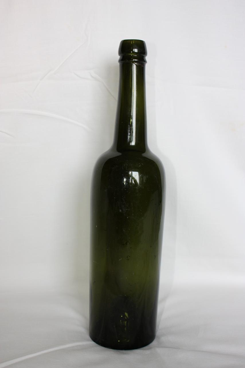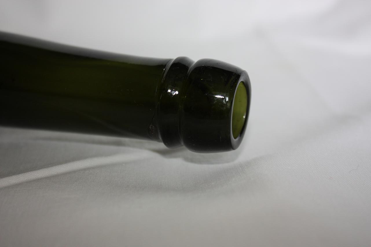 Темная бутылка , возможно пивная. На горле паз под крепление фарфоровой пробки.