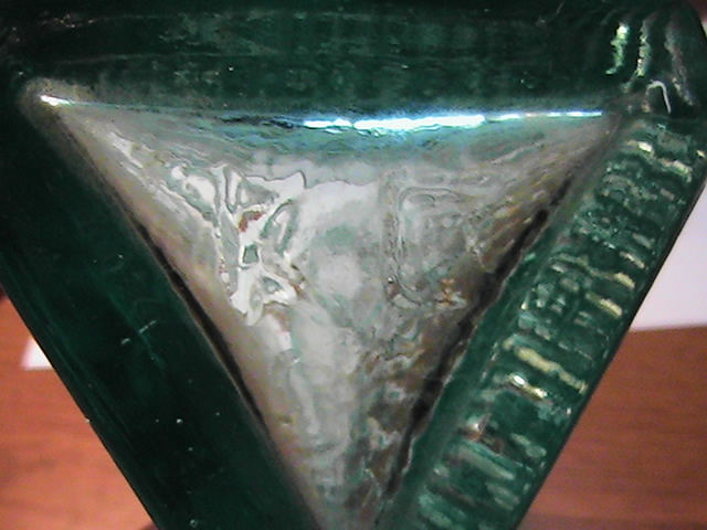 Я рад сказать всем,здравствуйте.Всем всех благ.При подъёме очередного металлолома на свет появилась вот такая бутылочка.Сама треугольной формы,высота 17см,одна грань рифлёная с 5 делениями.Вторая просто рифленая,третья-прозрачная,а по углам по 20 делений.На дне буквы К С.Подскажите пожалуйста,что это за пузырёк.Заранее спасибо.
