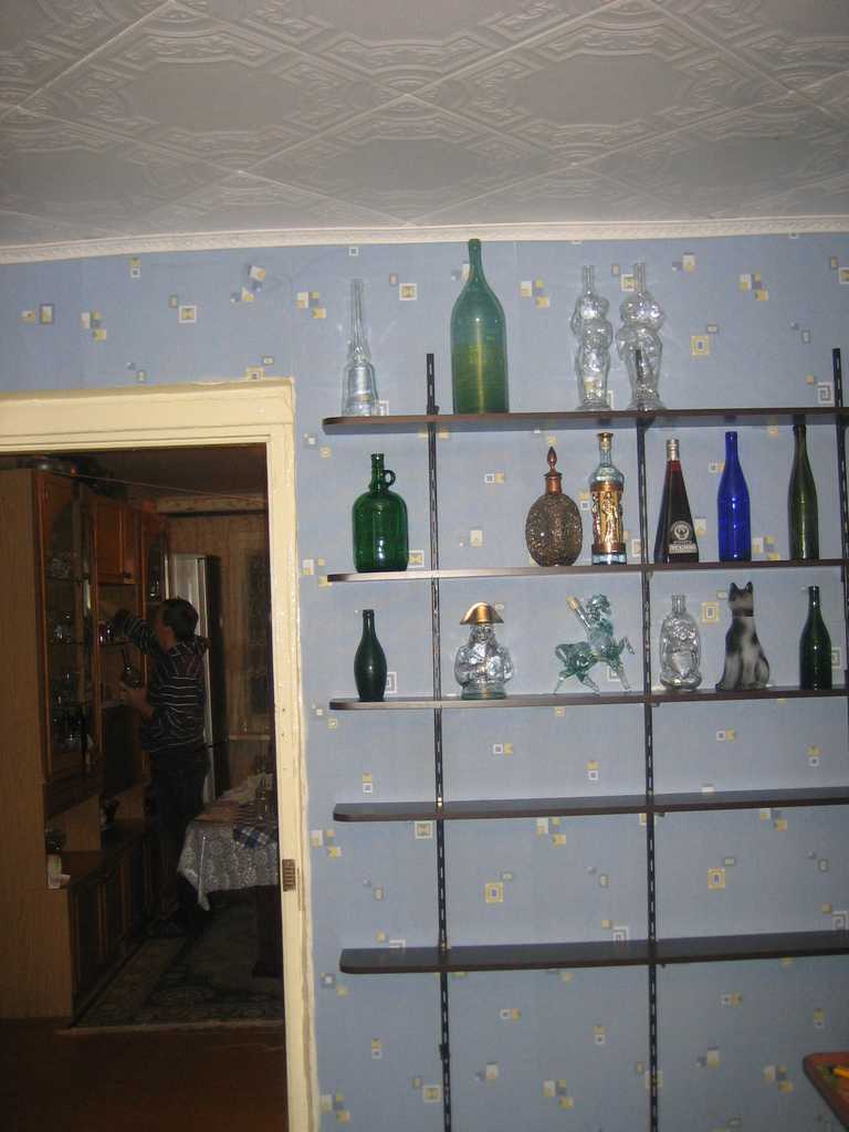 Сегодня закрепили полки на бетонную стену..... Пошел на праздник с женой, а мысли как бы быстрее расставить бутылочки.... Пришли домой, я сразу начал расставлять.... Не судите строго просто расставил , не распределял и не делил, выставил все хаотично! )))))))))