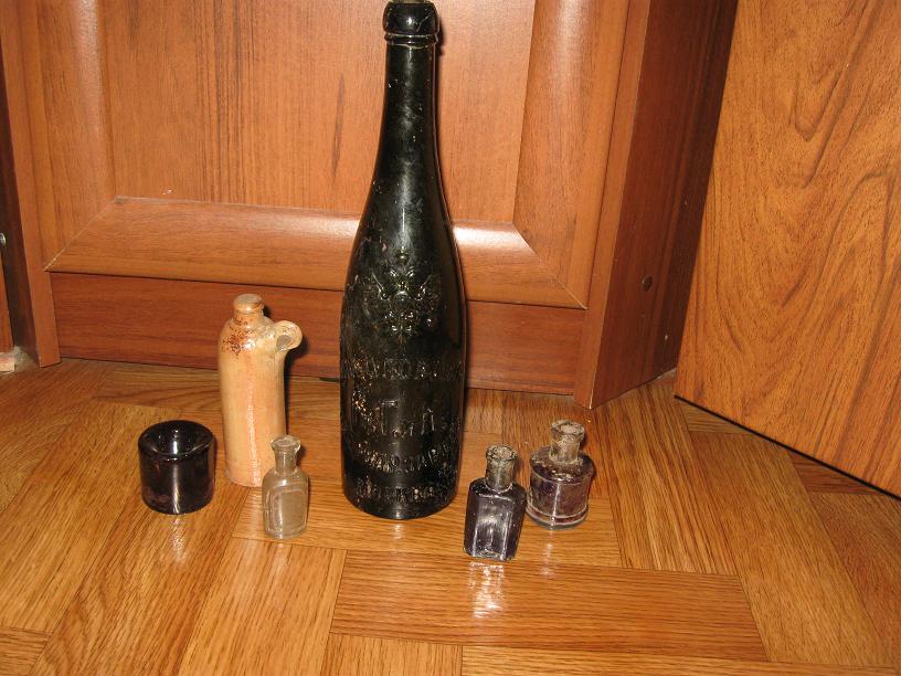 Приехал с очередного отдыха у друзей, отдых был довольно плодотворный в одном из погребов найдены пара интерсных бутылей для сравнения рядом поставил пару четвертей....