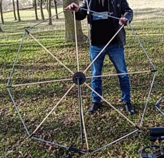 Ещё рассматриваю вариант круглой рамки из композитной арматуры. 4 колена по 2 метра. Перевозить можно в тубусе из трубы. Для работы в стесненных условиях думаю будет лучше чем рамка из труб. Паутинку платирую тоже из композитной арматуры.