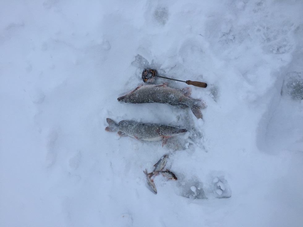 Приветствую, сегодня за всю зиму вырвался немножко порыбачить, клёв был голавчик клевал на безмотылку но мелкий (живец), окушок на всё клевал.