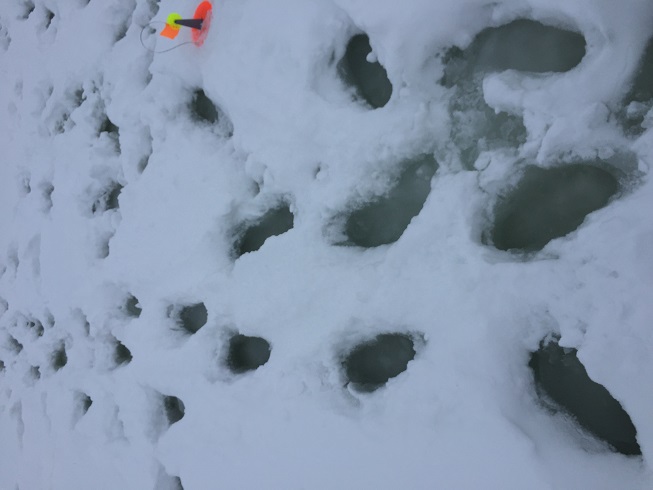 Лед двухслойный, похоже, образуется и третий слой. Видимо под тяжестью снега лед прогнулся, вода из лунок вышла на лед. Глубина воды под снегом порядка 10-12 см., впечатление - ходишь как по болоту, ноги устают. Из-за чего, жерлицы раскидал на небольшом участке, поближе к камышам, где поменьше воды. За почти 5 часов 11 флажков реализовал только три, на одной вырвал из зубов, остальные холостые . Что интересно все сработки только на карасика. Похоже на этом месте, сорога у зубастой не в почете. В отличие от её привередливой, мы в семье этим комплексом не страдаем, едим всякую и во всяком виде. Эти три пойдут на балык! Всем ни хвоста, ни чешуи! Вложенные эскизы изображений |