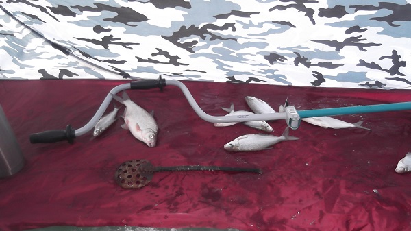 ![]() Хотели найти крупного окуня,но...не нашли. Под вечер был "маааленький выходик",минут на 15.Несколько штучек удалось вытащить на блесну.300-400 грамм. ![]() На безмотылку замучала мелкая сорожка и густерка. На жерлицы были пойманы 6 щучек.Самая-самая 2 кило. ![]() У меня: минус безмотыльная мормышка (откусила щучка),минус балансир (забрала коряга). Воды мало.Глубина 1,5-2,5метра.Штиль,+1 градус. Всем удачи! |