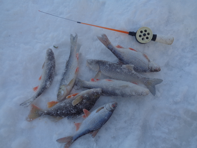 Отправились (дней десять назад) с другом на Яузкое водохранилище. Ночью в день отъезда, на точке ловли было - 36. Пока то да сё, погода в плюс пошла. Фотографии общего улова не делал, т.к. мело сильно в этот день. На двоих килограмм 7 поймали. В улове: судак, щука, окунь, плотва, лещ, подлещик, густера. Судачок на фото взял на «чёрта» (отпущен, конечно). Жерлицы «горели», но 90% холостых подъёмов, ощущение будто не хватало лески. Глубина для жерлиц была макс 4 метра. Ставили по 5 флажков на каждого, но по ходу остальным пофиг на количество по установке. В одно лицо ставят по 30((. Выход рыбы был с 10 до 13 часов. Ночью лещ брал очень вяло. Кормили «домашней кашей» и чистым мотылём с покупной химией. ![]() ![]() ![]() ![]() ![]() ![]() ![]() |