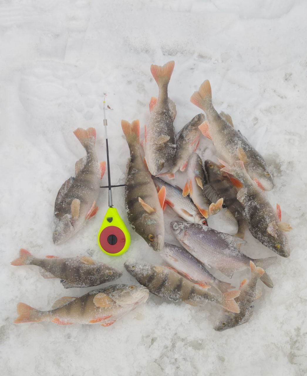 QUOTE(Barsoff @ Jan 14 2026, 21:59) поздравляю с уловом щучка это зер гуд а у меня вот что поймалось сегодня всего 6 окушков, но я и поперся уже в три часа дня ибо заскучал поймалось маленько, пять среднего размера и один аж на 480 грамм, почти полкило, еле вытянул а вот примерно второй такой же сорвался прям под лункой. Я его не видел, но судя по тяжески, которую ташил, было что-то подобное в 16-00 примерно это произошло, то есть всего час и половил, больше поклевок не было ни одной полчаса и я потопал до дому как в детском сочинении писали - "усталые ( продрогшие ), но довольные, мы вернулись домой" сорян за качество фоток, никак не мог приноровиться сфотать... Отличные полосатики!!! Я последние время заметил такую хрень, лунка 1 максимум 2 рыбины и в следующую лунку. -------------------- Куплю нательные крестики с изображением святых до 18 века включительно, любые предложения в лс.