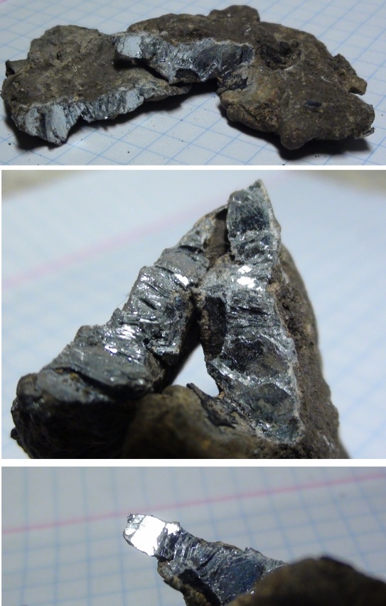 Пару лет назад попался оплавок, представленный на фото ниже. Имеет определённо техногенное происхождение. Не магнитится, но металлодетектор на него пищит. По плотности - легче свинца, примерно как чёрный металл, (два кусочка 55г. для визуальной оценки). С усилием поломал оплавок руками. На сломе, блестящая, ступенчато гладкая поверхность, напоминающая стеклянное зеркало. Не тускнеет со временем. Верхний (тёмный) слой, напоминает свинцовую патину, сцарапывается с приложением значительного усилия. Прошу подсказать, если это возможно, что это за материал. Вложенные эскизы изображений |
