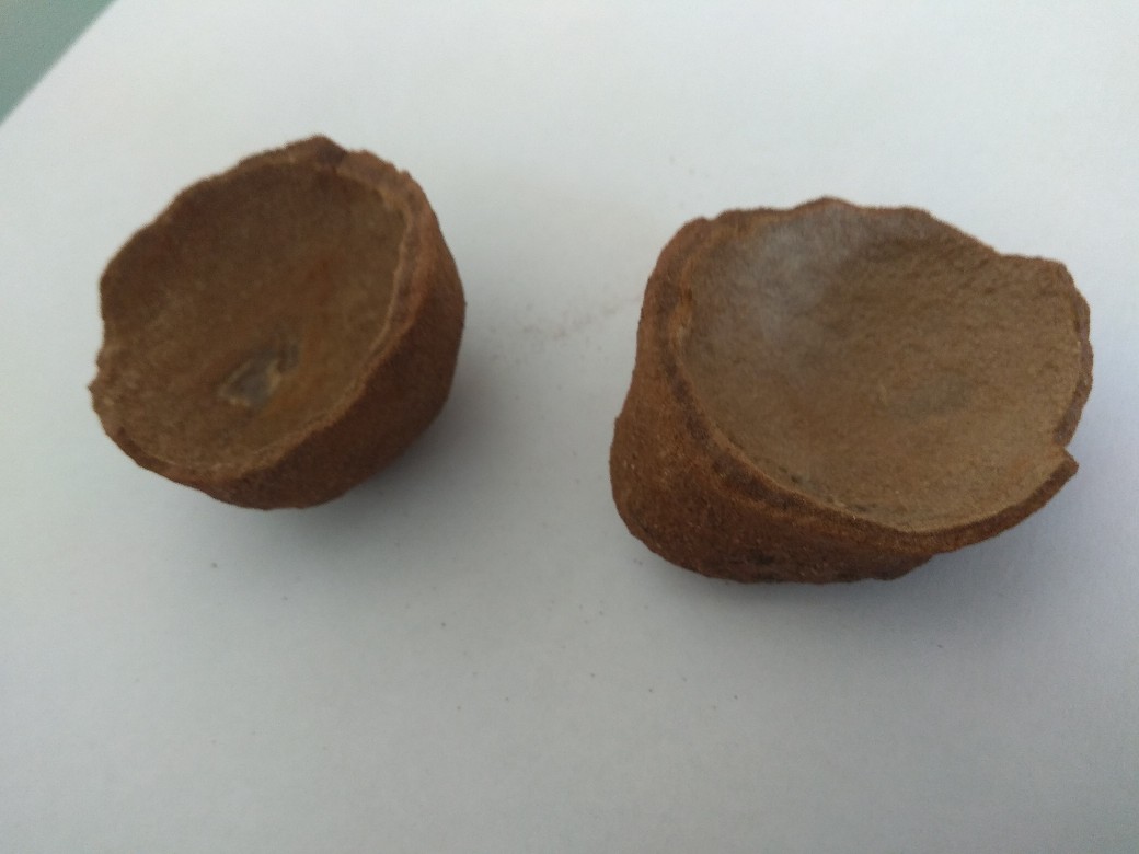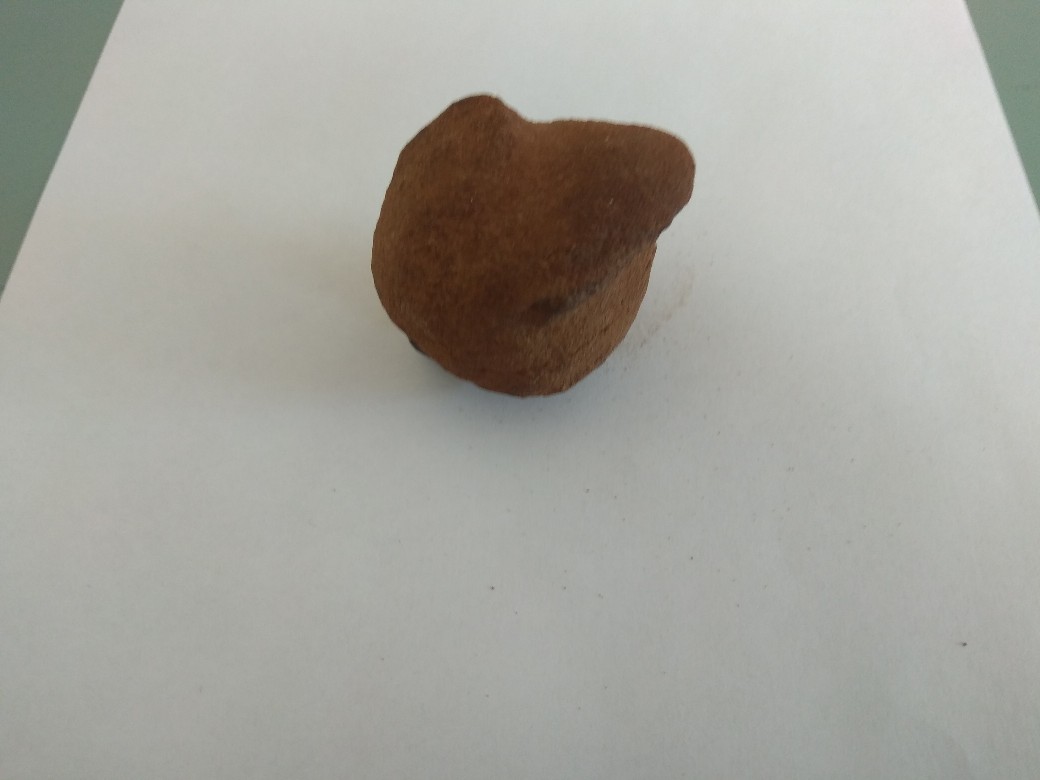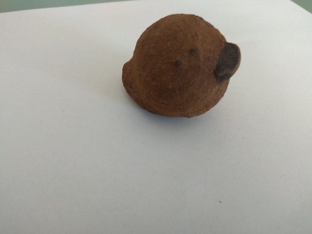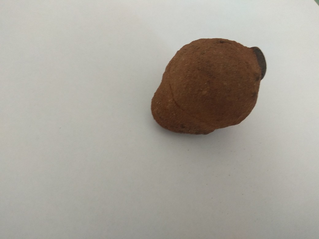 Подскажите, пожалуйста, что это? Найдено на берегу реки северо-востока Европейской части России. Размером чуть крупнее куриного яйца, внутренняя полость по форме яйцо и напоминает, очень правильная. Стенка тонкая, хрупкое как из глины, при раскалывании обнаружилось что заполнено мелким бело-серым кварцевым песком (со слов, так как нашел и расколол не я, соответственно фото песка нет и песок не сохранили). За природное происхождение мысли что конкреция какая нибудь, но глиняных примеров с песком внутри я в сети не вижу, за рукотворное - напоминает по форме птичку-свистульку и вот этот черный камушек идёт насквозь через всю стенку, как будто затычка отверстия, как будто кто-то наполнил песком и заткнул.