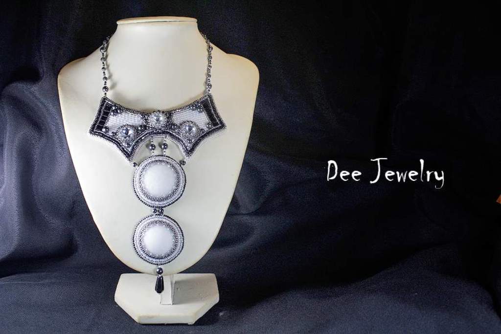Сделал кабошоны из Снежного камня, а мастер создал украшение.