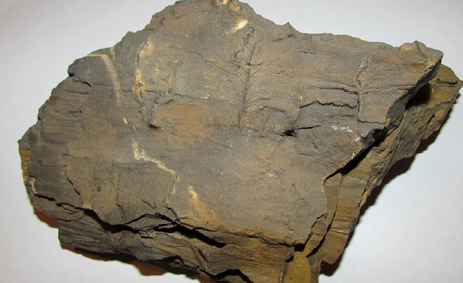 Давно еще, в одном урочище попался на глаза необычный камень, тоже думаю кусок окаменелого дерева? Видны ходы (они светлые) каких то деревоедов, хорошо заметны годичные кольца. Рядом глубокий и длинный овраг, в котором бежит ручей. Видемо камушек оттуда, пацаны принесли.