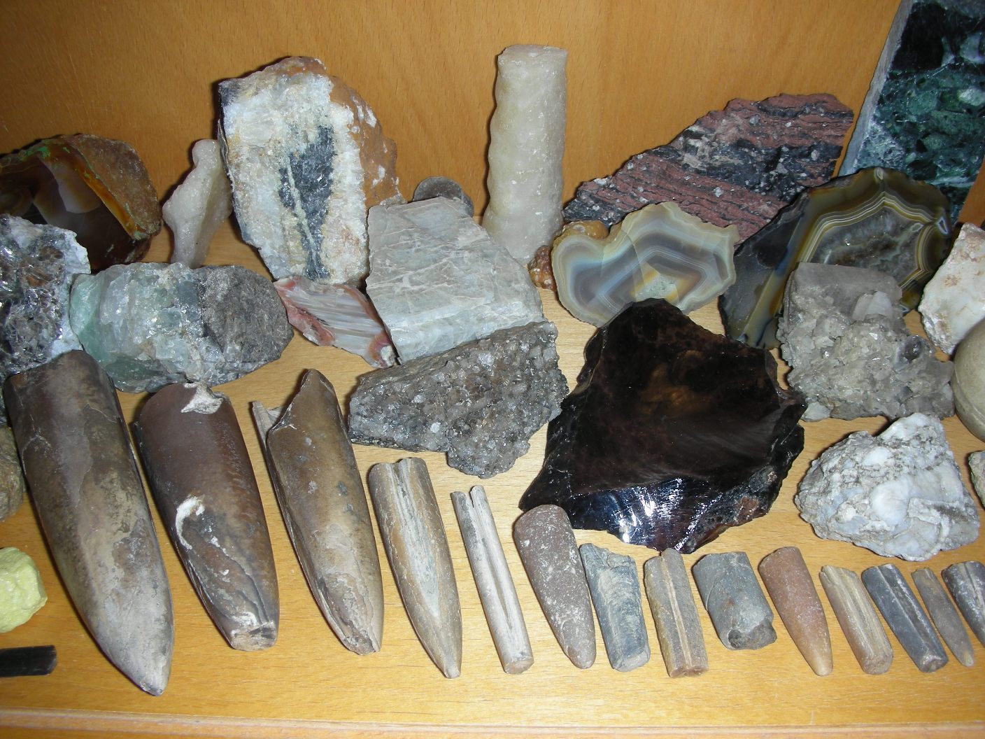 В основном кварц, халцедон, горный хрусталь, агат и окаменевшее дерево
