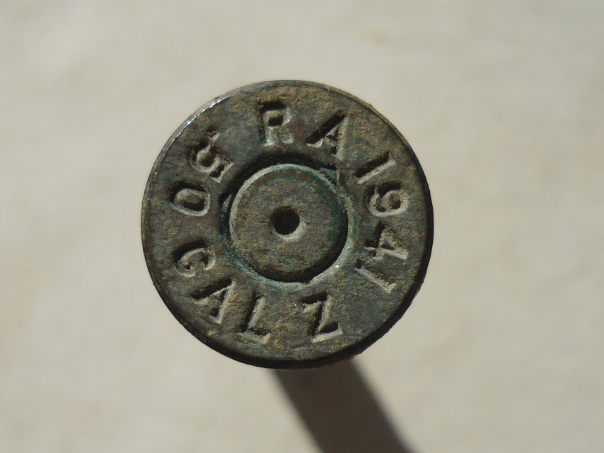 QUOTE(ШВАК @ Nov 4 2012, 23:37) НЕМЕЦ 7.92/57 (К 98) Спасибо! Только я не совсем понял, это к пуле или к гильзе относится? И еще вопрос - из какого оружия стреляли? Просто в найденной неподалеку немецкой каске есть отверстие, которое вроде как совпадает с диаметром пули. |