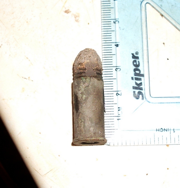 QUOTE(Фигляр @ Nov 20 2012, 23:16) Подскажите по гильзе... Похожа на дореволюционный патрон .44 Смит-Вессон русский. Только пуля на миллиметр вылезла наружу. |