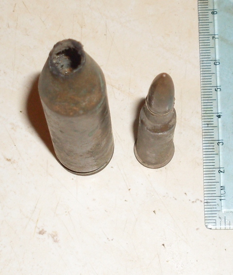 QUOTE(VVL @ Nov 21 2012, 01:53) Похожа на дореволюционный патрон .44 Смит-Вессон русский. Только пуля на миллиметр вылезла наружу. Спасибо за ответ. думал что то более древнее ))) Вот ещё пара "Кайнок" и "монстр" какой то. ))) Интересно - от какого оружия та что побольше? Калибр пули у них, похоже, одинаковый. У большей горловина обломана Вложенные эскизы изображений |
