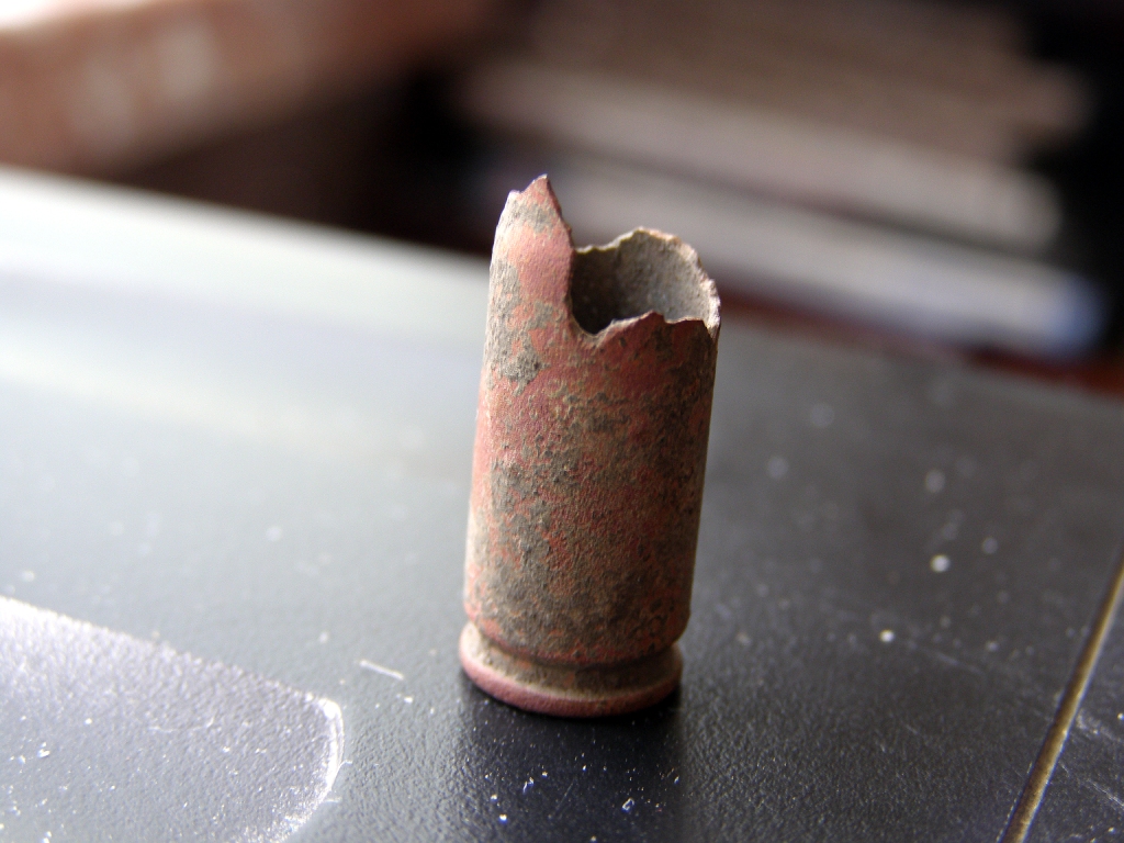 Вопрос следующего плана - нашел гильзу от патрона, судя по размерам и утончению гильзы - все сходится с патроном маузера. Вот только гильза - в форме розочки - края неровные. При выстреле вроде так не раскрывает ее... - что с ней было?