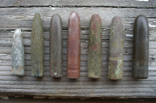 Это ещё не все мои вопросы. Дело в том, что я "присел" на тему гильз и пуль. Теперь более внимательнее буду на копе. А к копаному добавил купленое на нашем ауке. Коллекция складывается, информация набирается. Но вопросывсё возникают. Вот эпоха первых казнозарядных. Вторая Бердана (теперь хочу гильзу. Четвёртая Гра. А вот первый великан, очень похожий на бердана, от чего? Третья заострённая тоже не определена мной. Дальше - Шестая Веттерли, а пятая Майера от чего? И наконец последняя Почти пустотелая, по цвету - медная или омеднёная - что-нибудь напоминает?
