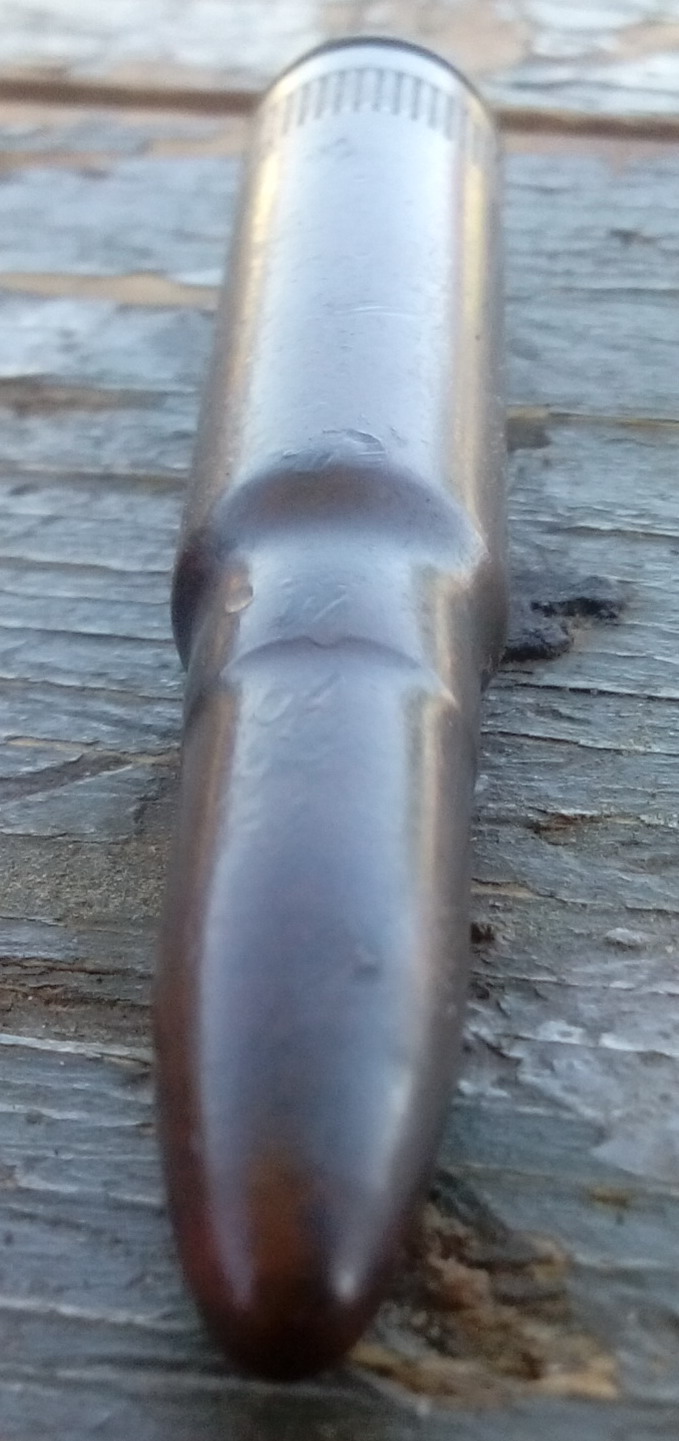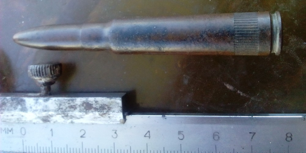 QUOTE(byval @ Jun 6 2015, 00:03) Сразу не понял, патрон, думаю очередной выскочил, но нет! Он цельный...макет или учебный!? Прошу помочь понять, что это? Клейм нет! Маузер-учебный! |