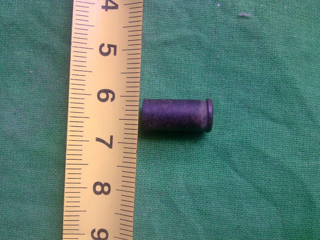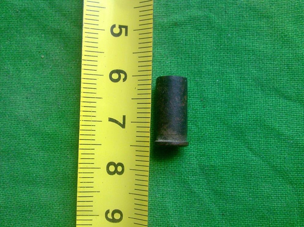 Вот такой останок от охотничьего патрона 16 кал. Картон не сохранился. Возможно, кто-нибудь знает, когда такие выпускались?