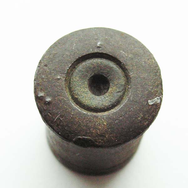 Типичная солдатская зажигалка. Пару раз я находил подобные конструкции. Внутри - пробензиненная вата. Крышечка отвинчивается - и бензинчик доливается по мере высыхания. Сбоку было припаяно колёсико-чиркалёк с кремнем; они в первую очередь отваливаются.