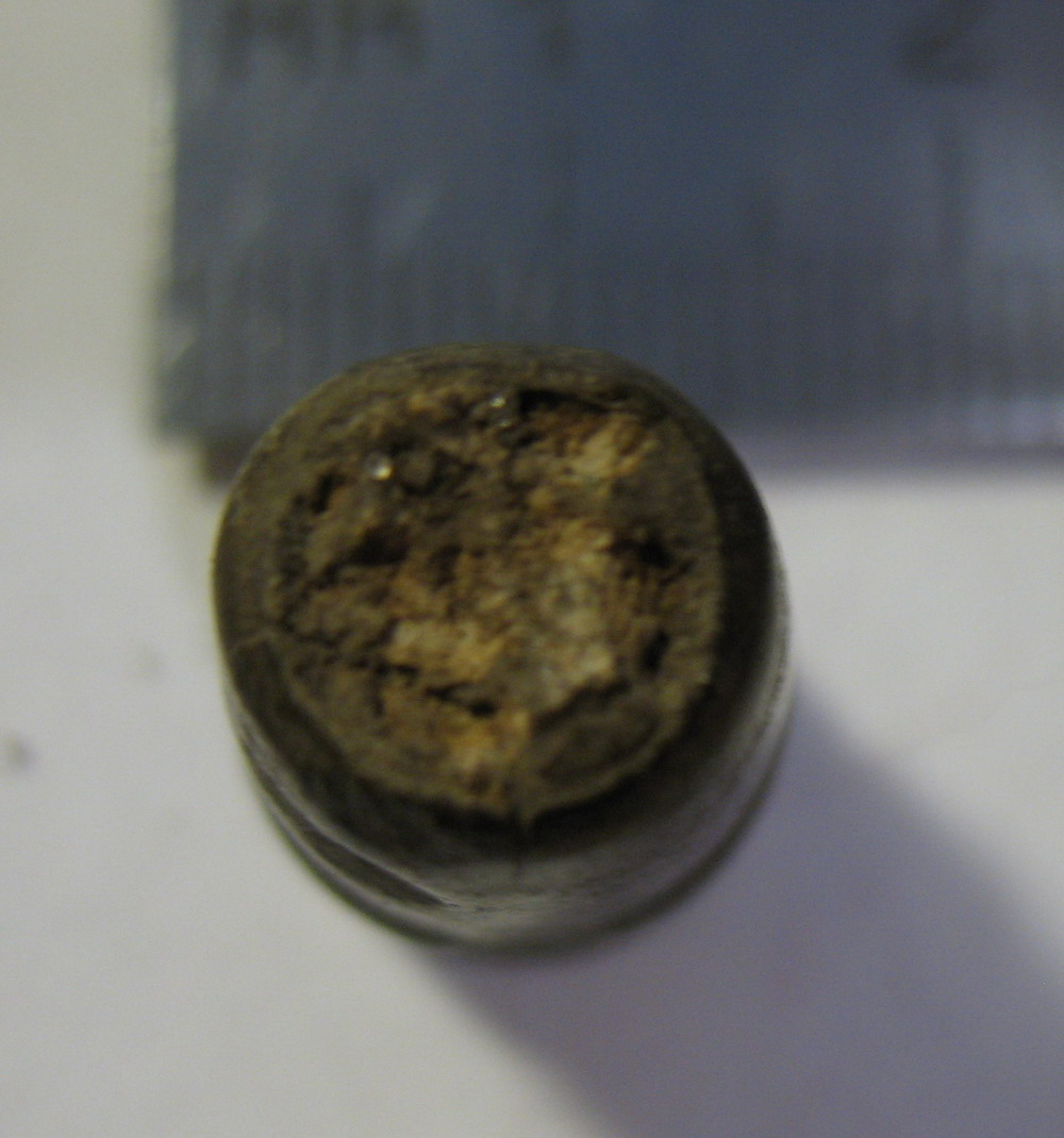 От себя ещё добавлю - патрон старый, не позднее 1920-х гг. А маркировку - ищите внимательно, какая-никакая она должна была быть. Просто эрозия гильзу не пощадила.