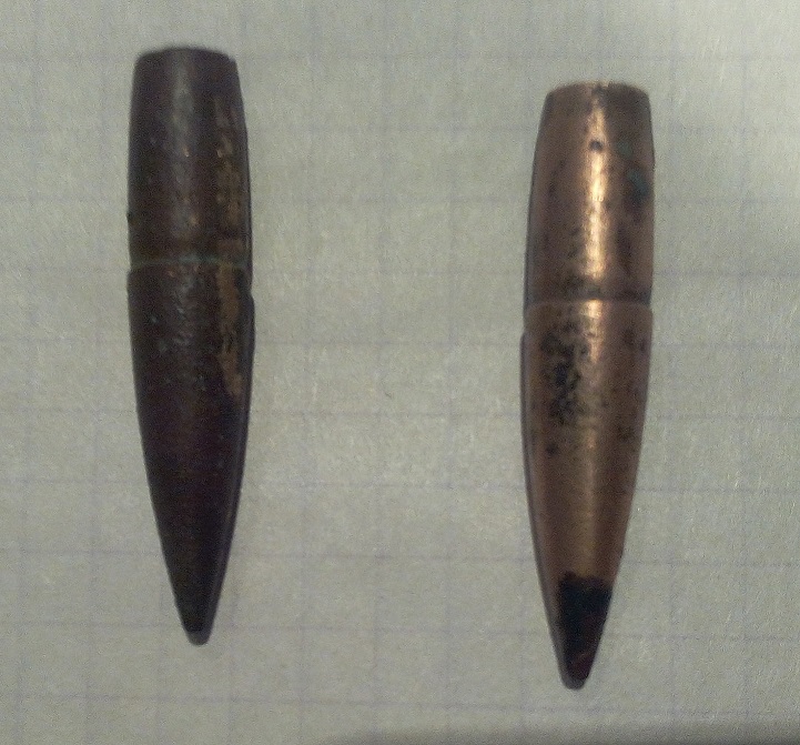 QUOTE(Антон П. @ Nov 21 2015, 21:05) Здравствуйте,прошу помощи в определении пуль.Пули латунные,не магнитятся,на донышке стоит РК.Может bыть лебель?С Ув.! По форме вроде Лебель, только оболочка не латунная а томпаковая, и замер - важнее диаметр а не длинна! Пуля не простая точно, либо ПЗ либо БЗ. -------------------- Никто не умрет девственником, жизнь трахнет каждого.