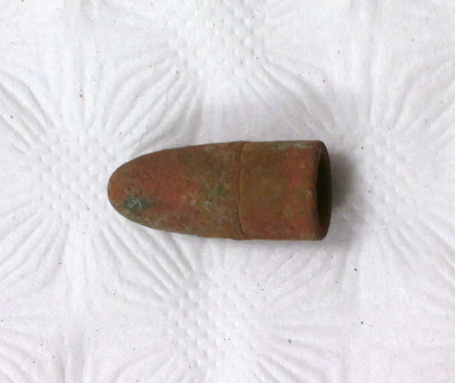 QUOTE(FishBurg @ Dec 27 2015, 18:25) Коллеги, от чего этот патрон? Длина 23 мм, диаметр посадочный 10,5 мм, пустотелый. это пуля а не патрон, ветерли витали, свинец вытек в костре например. |